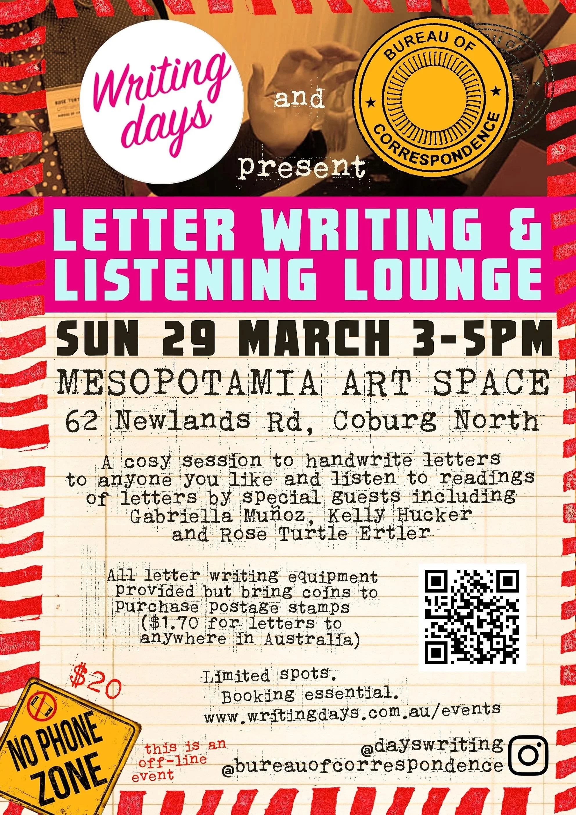 A cosy session to hand write letter to anyone you like and to listen to reading of letters by some very special guests.